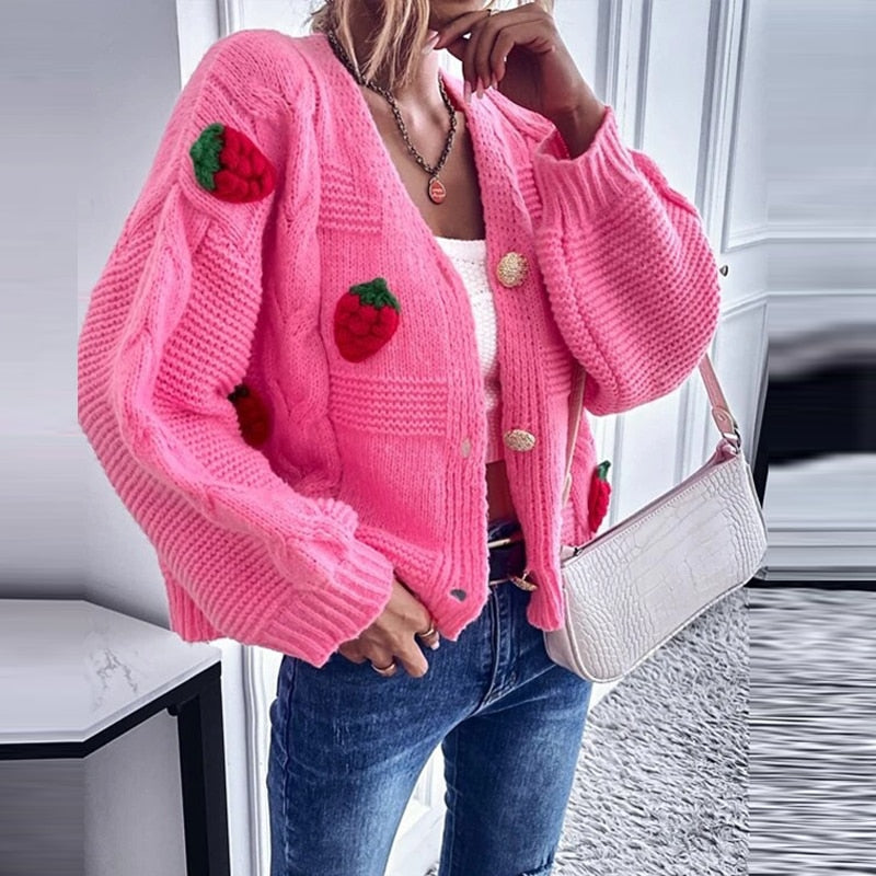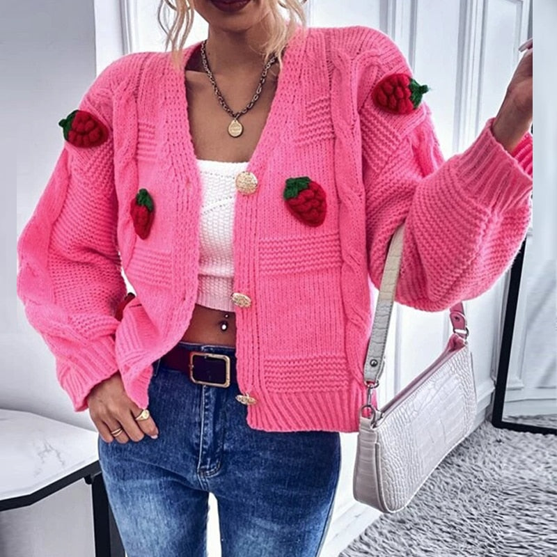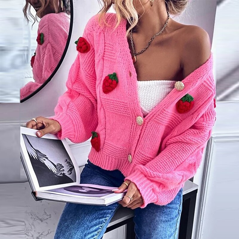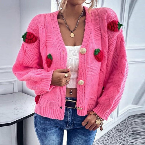 Single-breasted Knitted Coats Sweet Pink Cardigan Tops